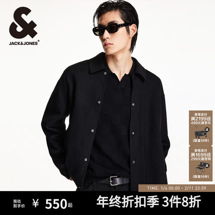 杰克琼斯男装秋冬新略宽松时尚潮流基础百搭按扣门襟尖领毛呢大衣