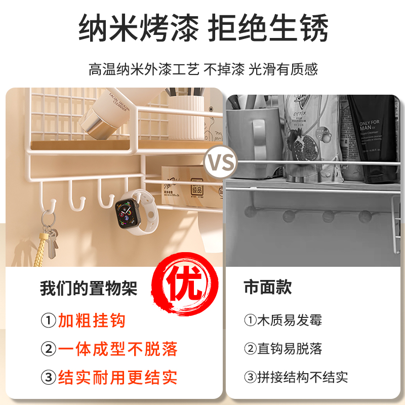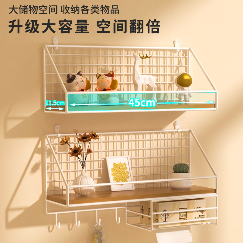 墙上置物架宿舍床头墙壁收纳架免打孔墙面悬空挂篮卧室好物置物板