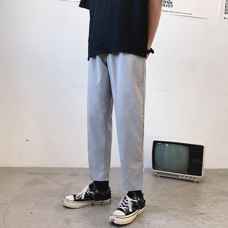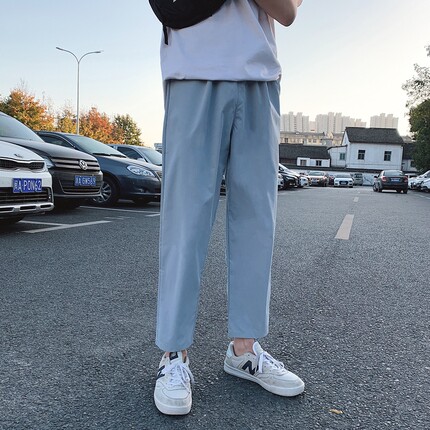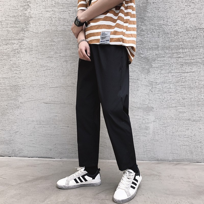 ins裤子男夏季薄款韩版潮流宽松直筒九分裤休闲百搭bf阔腿9分裤潮