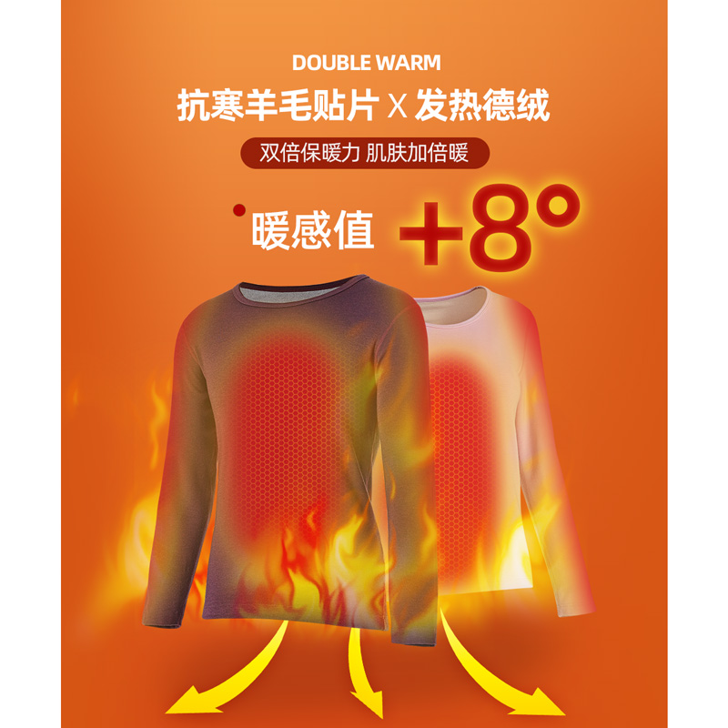 新1系X10德绒保暖内衣男女士加绒加厚羊毛贴片速热打底衫秋冬情侣