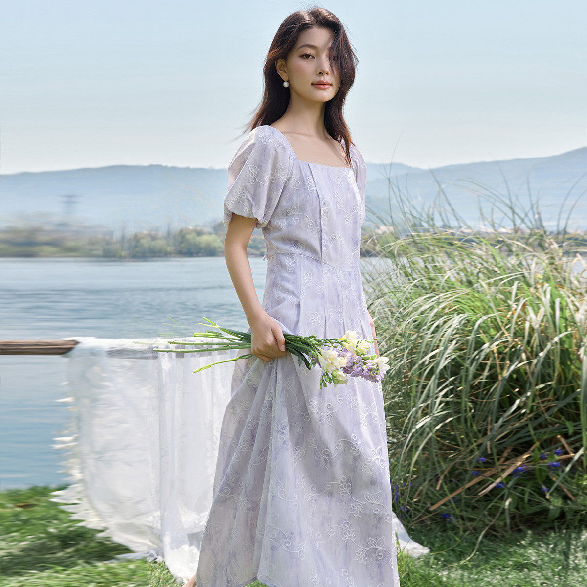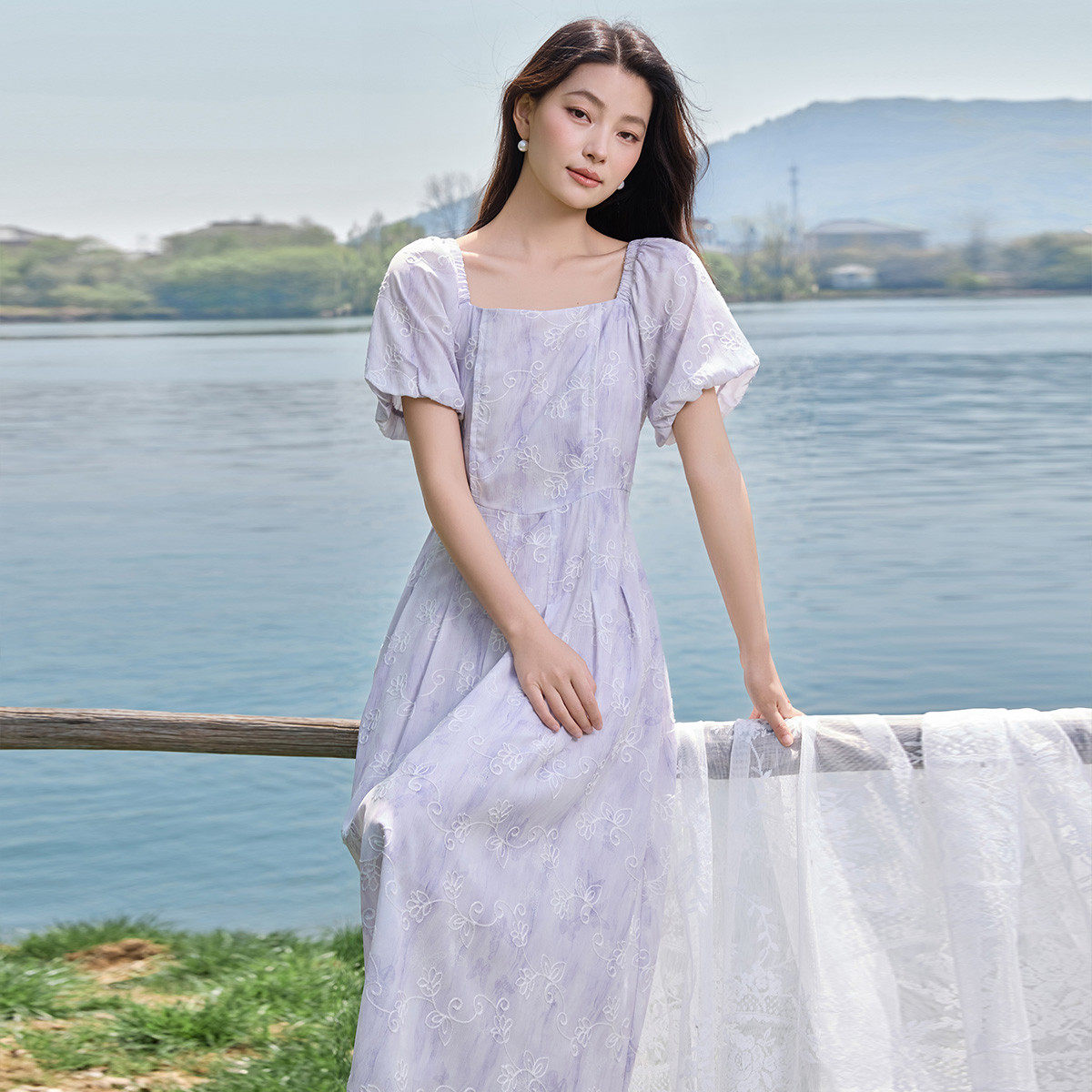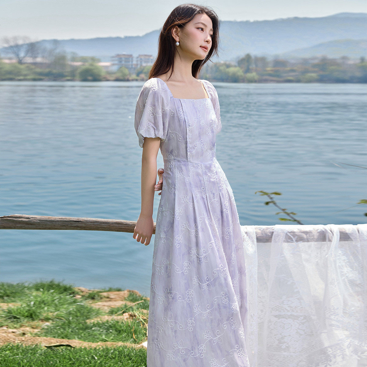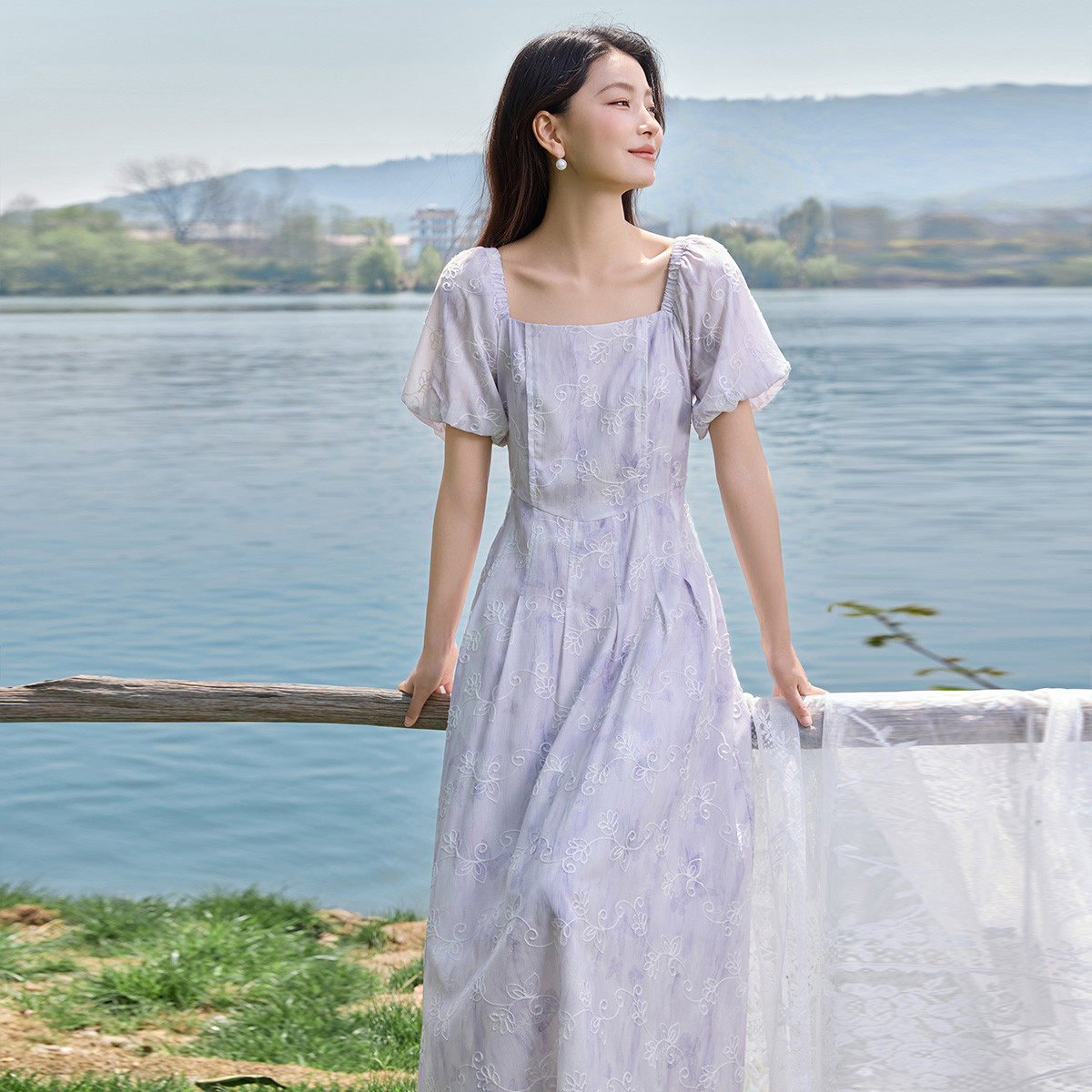 茵曼2026夏季新款方领短袖碎花法式连衣裙女泡泡袖今年流行爆款