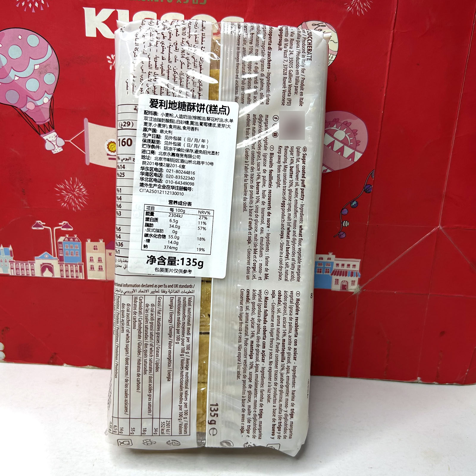 临期 意大利进口爱利地杏味酥饼/迷你榛子威化饼干休闲零食小吃