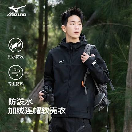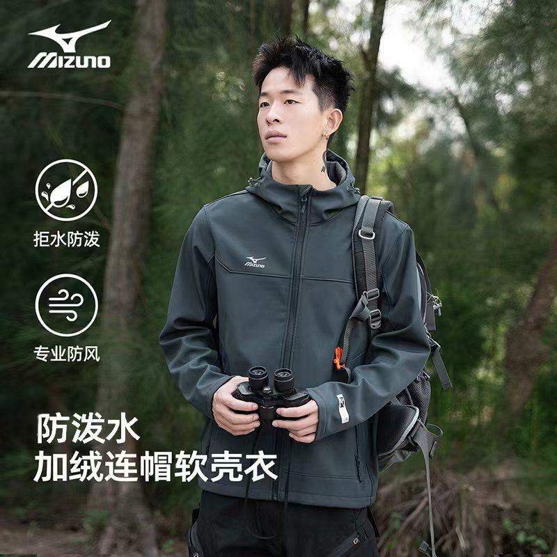Mizuno/美津浓秋冬户外防风防水软壳衣男女加绒保暖冲锋登山夹克
