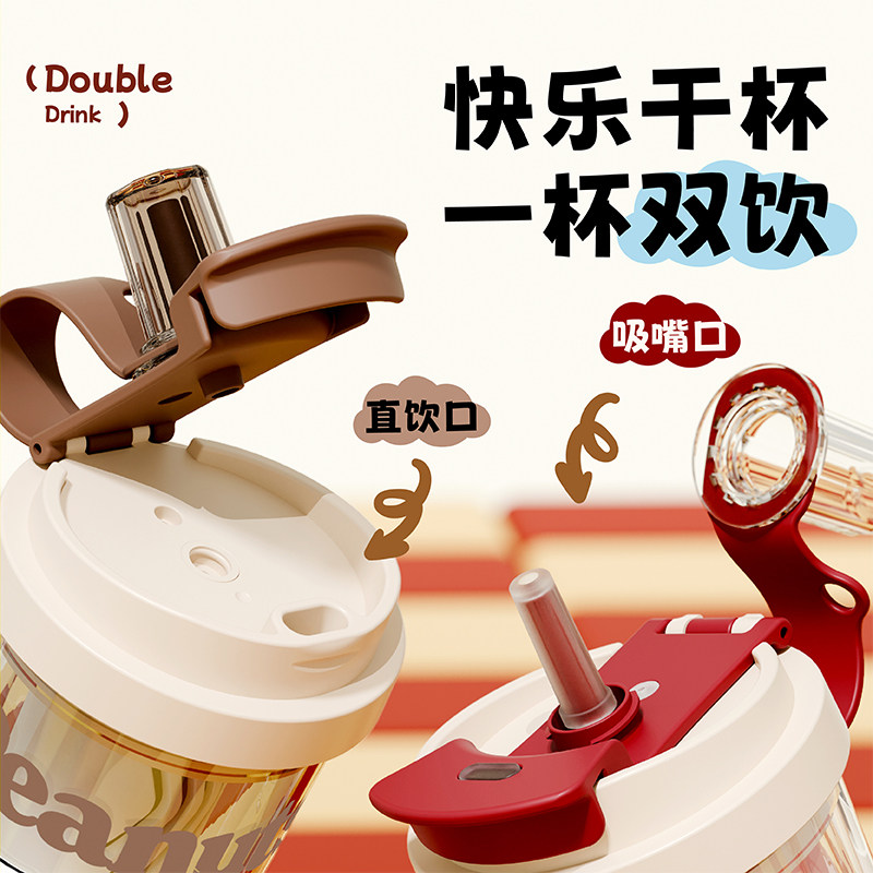 史努比儿童水杯女孩高颜值吸管杯子男夏季便携随行杯耐高温塑料杯