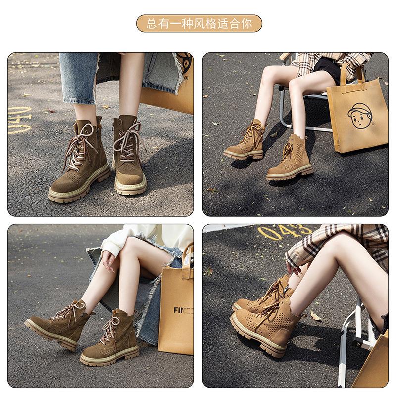 户外镂空马丁靴女2025新款夏季透气超火小短靴真皮棕色西部牛仔靴