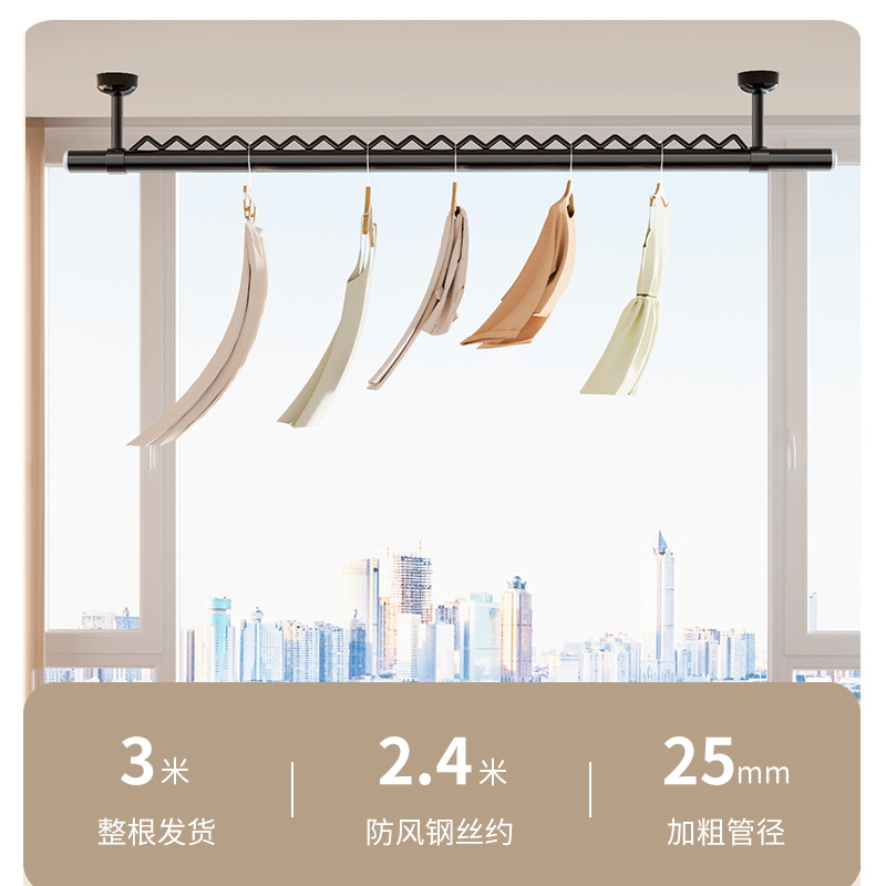 加厚防风波浪黑色管晾衣杆顶装固定式挂晒凉衣架阳台家用晒衣杆