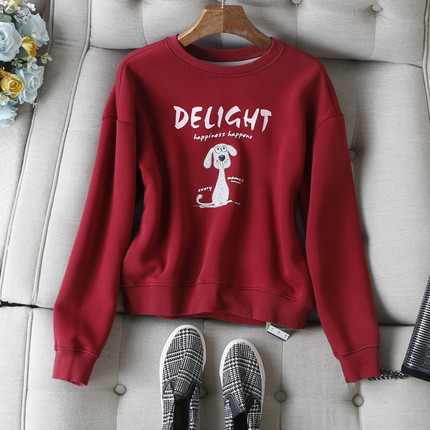 新年红~休闲减龄刺绣小狗含羊毛桑蚕丝保暖加绒加厚套头卫衣女