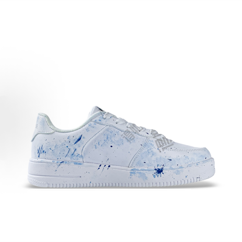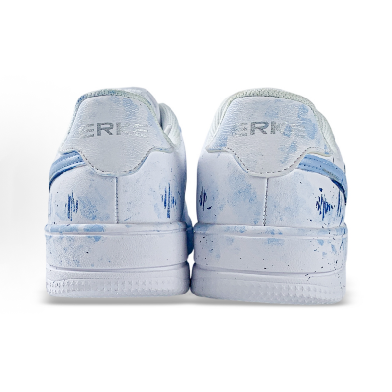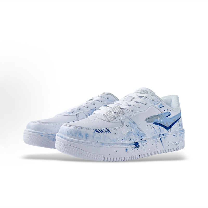 球鞋定制 鸿星尔克 空军一号梦幻涂鸦百搭舒适防滑低帮板鞋男白蓝