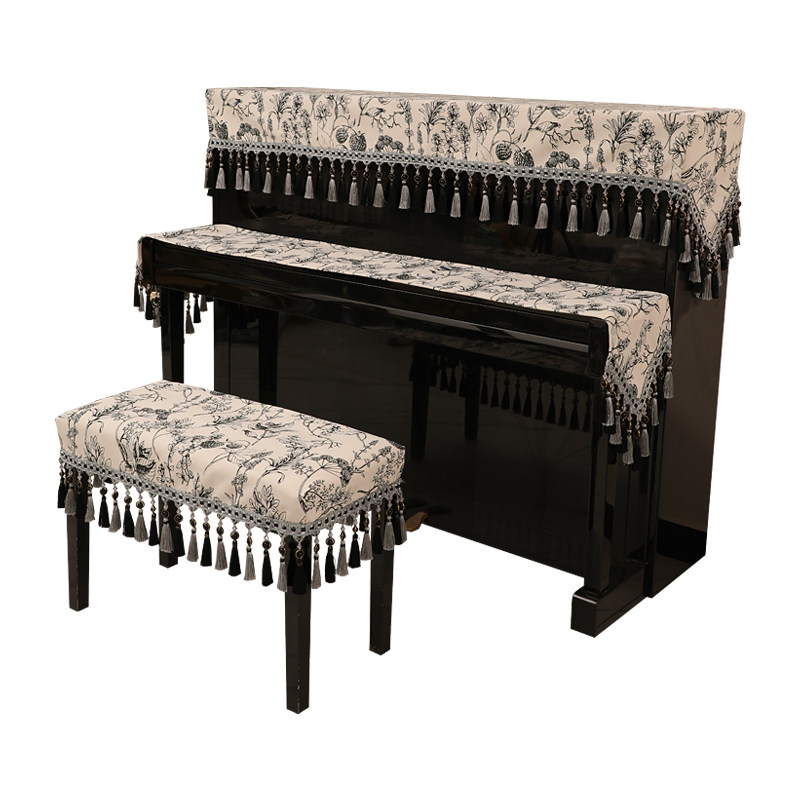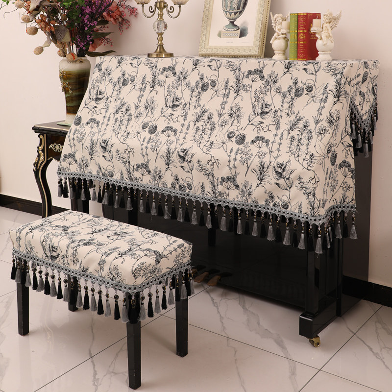钢琴罩防尘罩盖布简约美式轻奢欧式奢华钢琴套半罩凳罩立式琴布