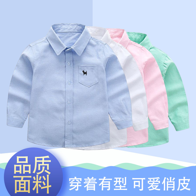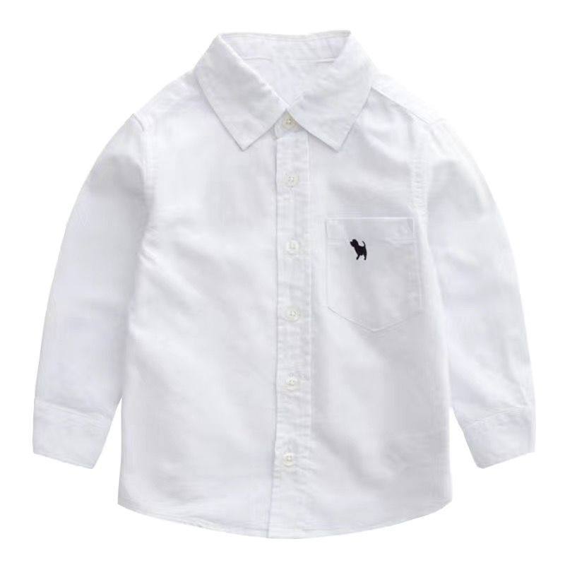 男童衬衫长袖纯棉春秋装休闲帅气童装中大童儿童宝宝新款白色衬衣