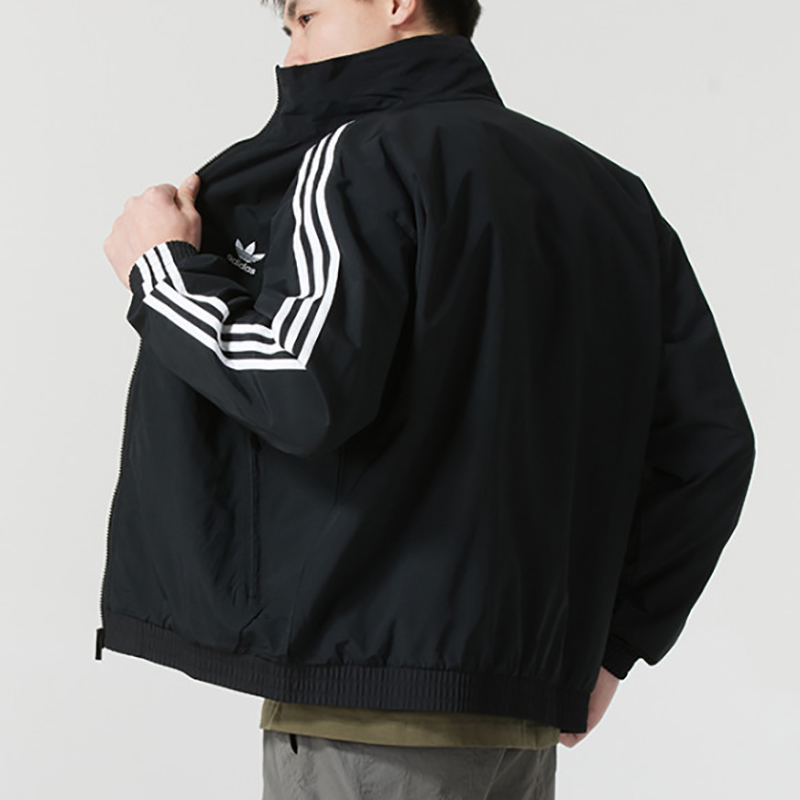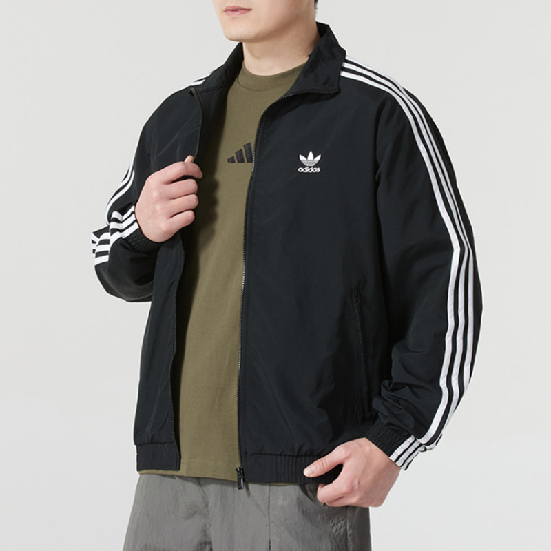 阿迪达斯三叶草外套男装2025秋季三条纹宽松立领防风衣夹克KB2466