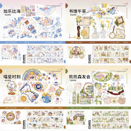 分装 E厘米喵星时刻加乐比海书瑰午茶熊熊森友会烫金pet手帐胶带