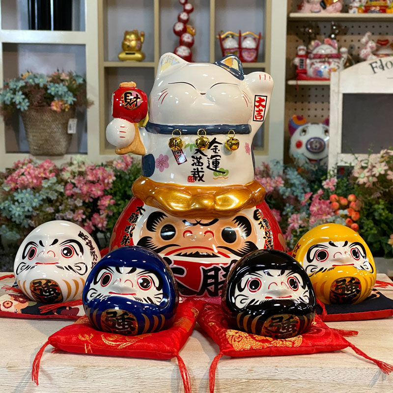 金石工坊达摩摆件招财猫存钱罐日式寿司店铺餐厅装饰创意开业礼品