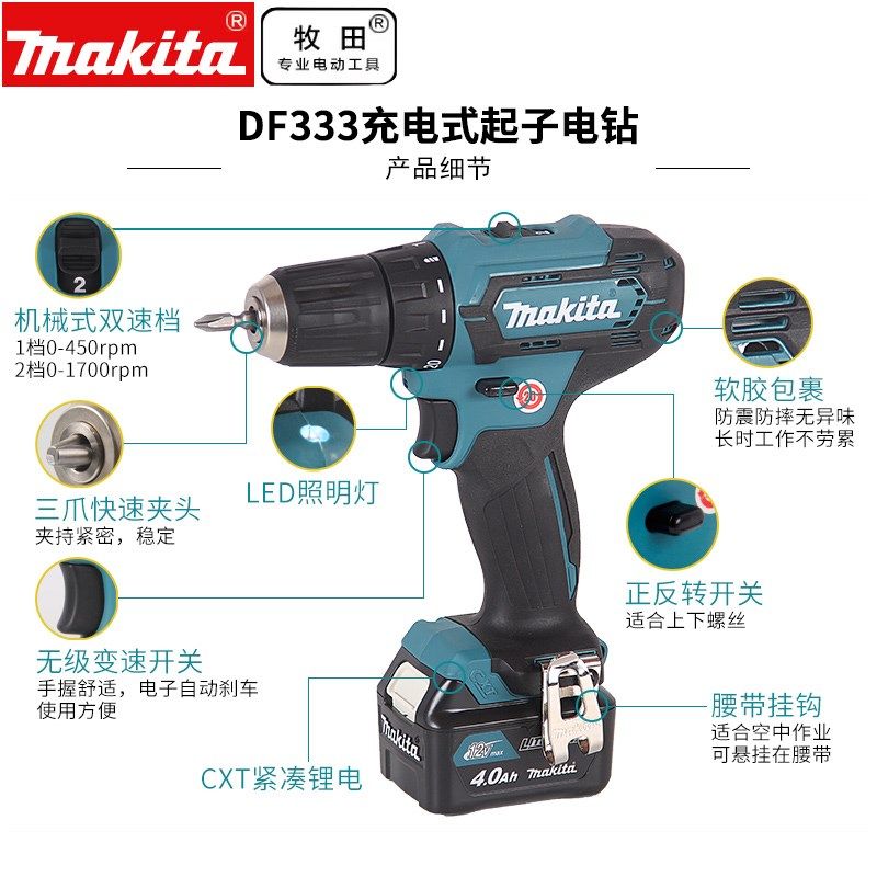 牧田12V充电式起子电钻DF333D多功能锂电手电钻手枪钻电动螺丝刀