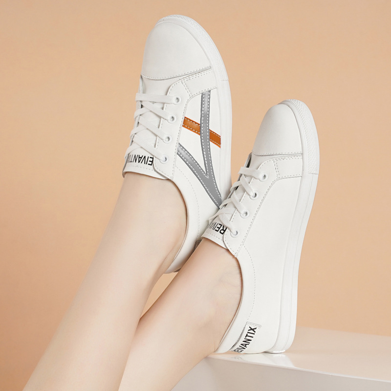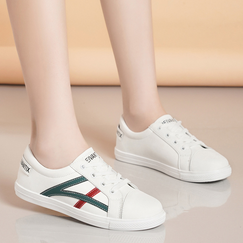 小白鞋女平底百搭防滑舒适软底圆头系带春秋季新款单鞋小皮鞋女鞋