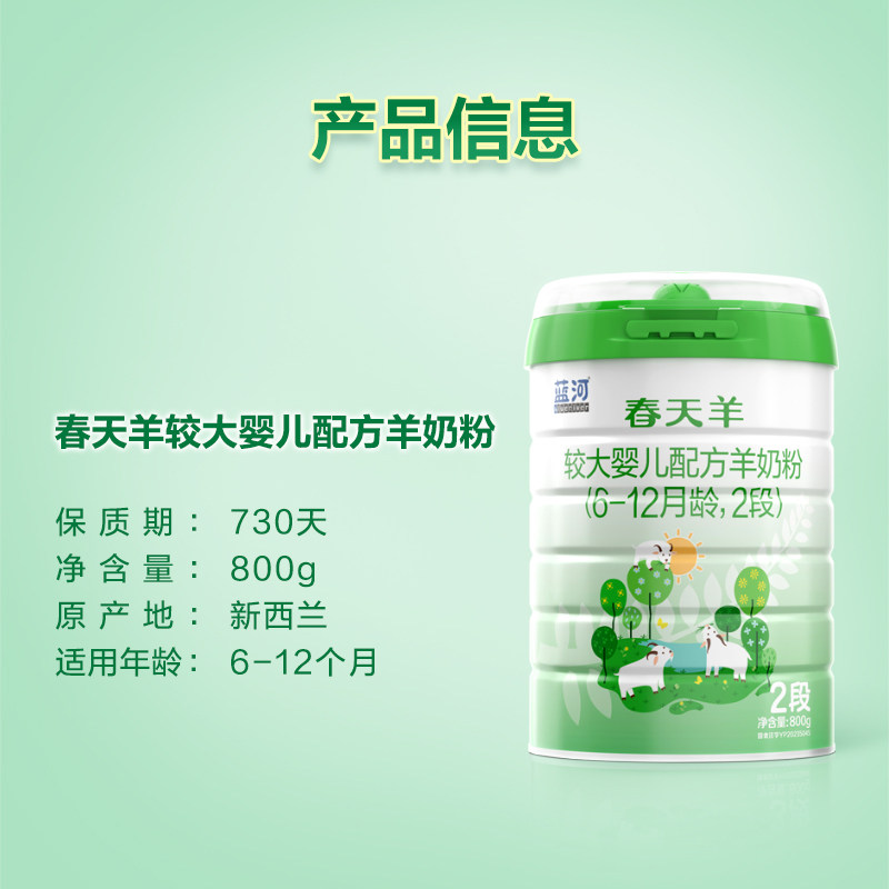 【官方旗舰店】蓝河春天羊羊奶粉2段800g 6-12个月新西兰进口官方