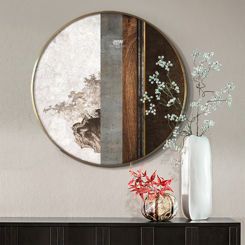 现代新中式山水风景装饰画客厅沙发背景壁画入户玄关茶室过道挂画