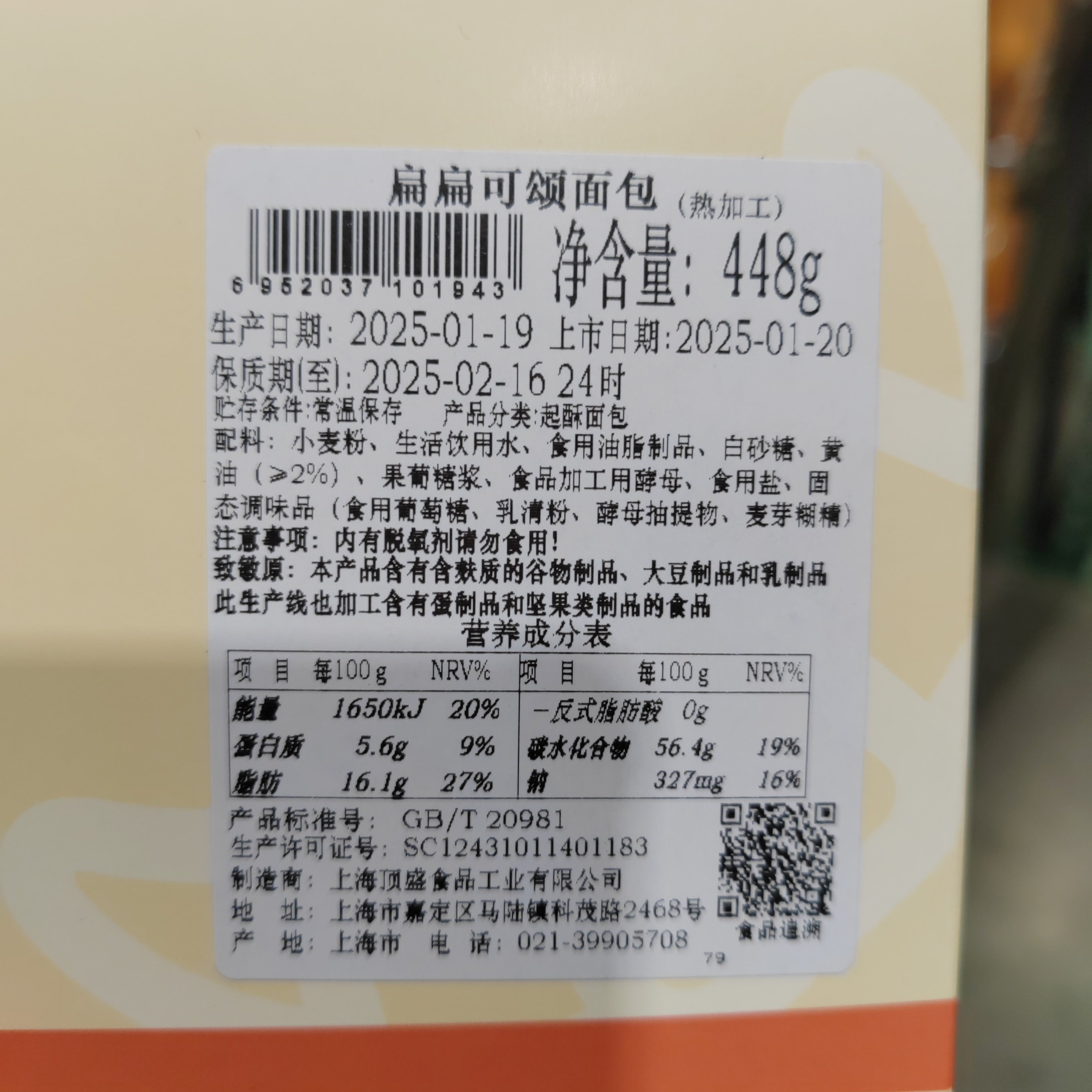 开市客购烧菓坊扁扁可颂面包传统西式糕点被压扁的可颂牛角包448g