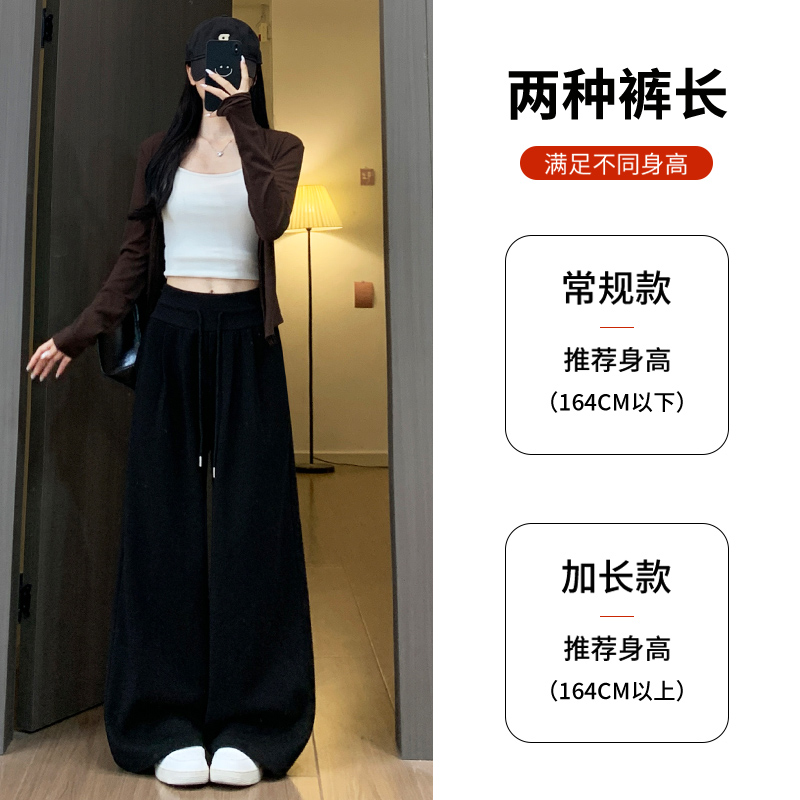黑色直筒运动裤女春秋季2025新款小个子高腰垂感宽松休闲阔腿卫裤