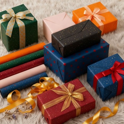 礼物包装纸生日礼物男生女生复古超大尺寸圣诞节礼品盒包装纸高级感丝带ins书皮包书纸花束打包材料红色结婚