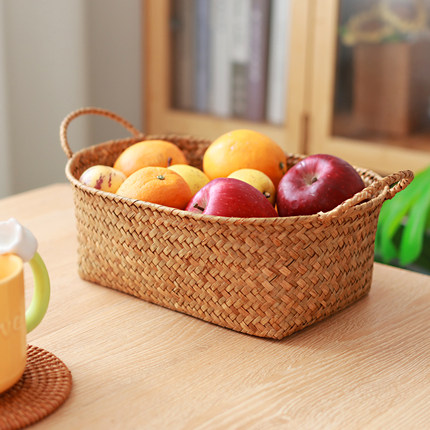 海草收纳篮水果篮子日式姜蒜筐草编篮鸡蛋筐收纳竹编篮果盘置物篮