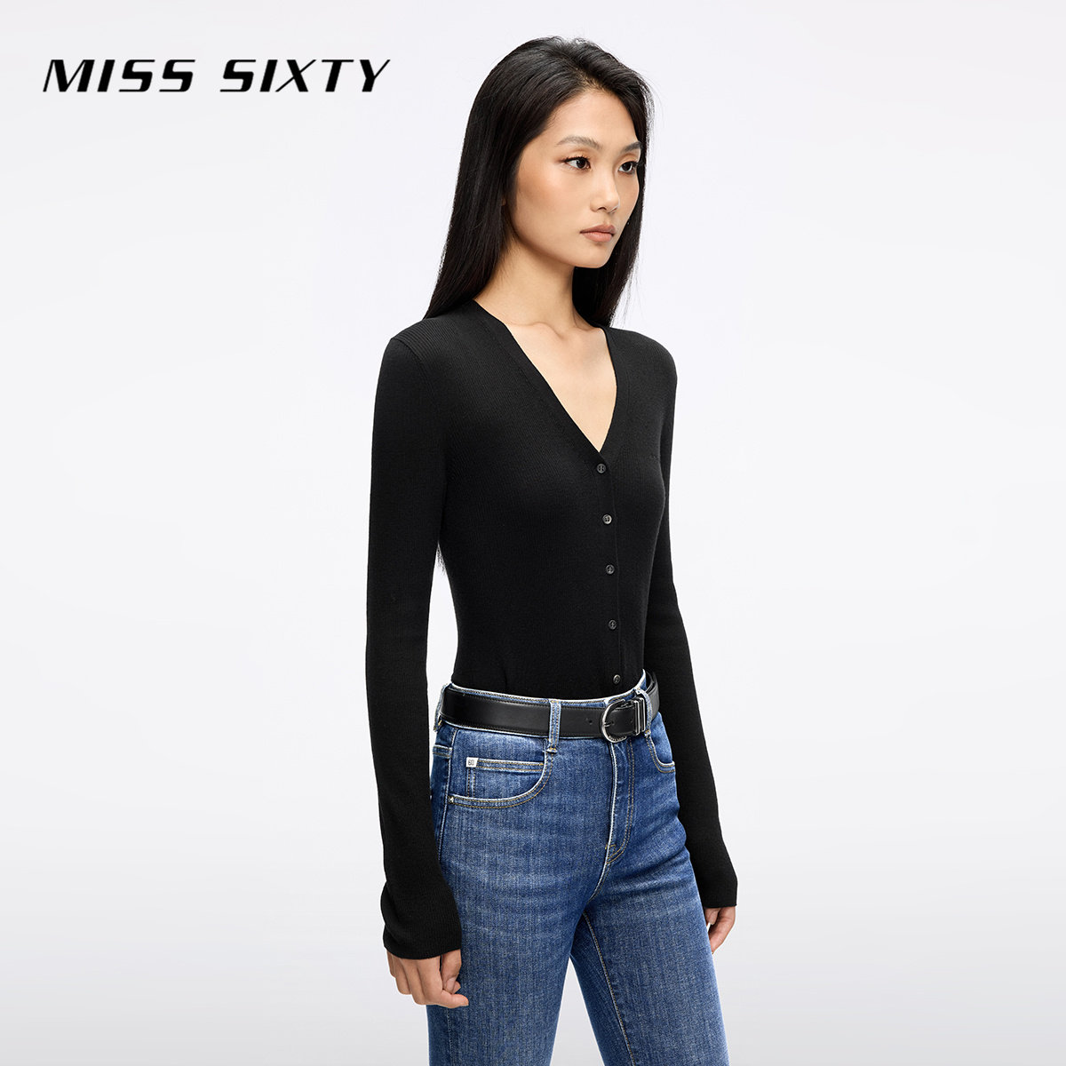 【杨幂同款】Miss Sixty25秋新款针织开衫修身羊毛桑蚕丝混纺毛衣