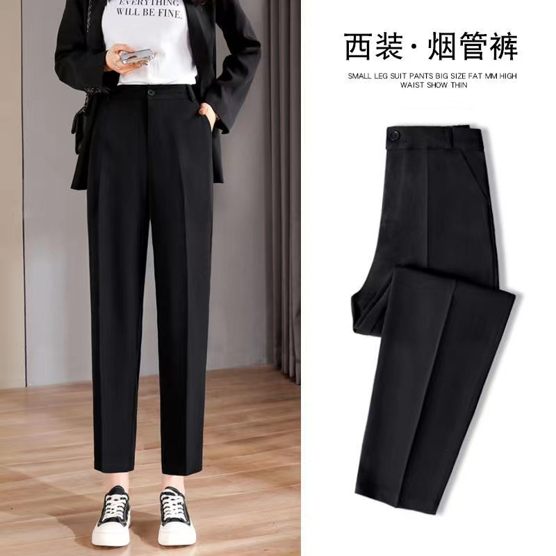 黑色西装裤女夏季高腰宽松显瘦直筒烟管裤气质九分裤垂感休闲西裤