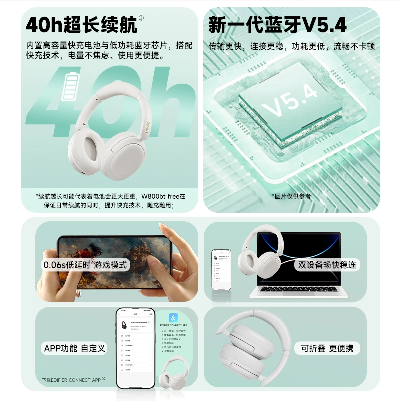 Edifier/漫步者 W800BT FREE头戴式蓝牙耳机新款适用苹果华为小米