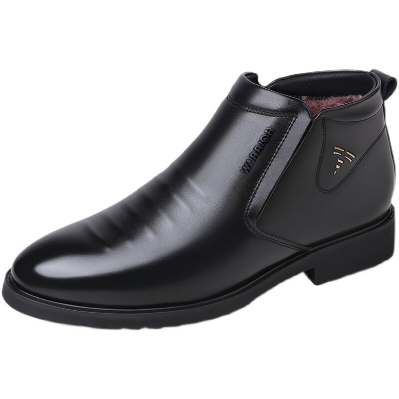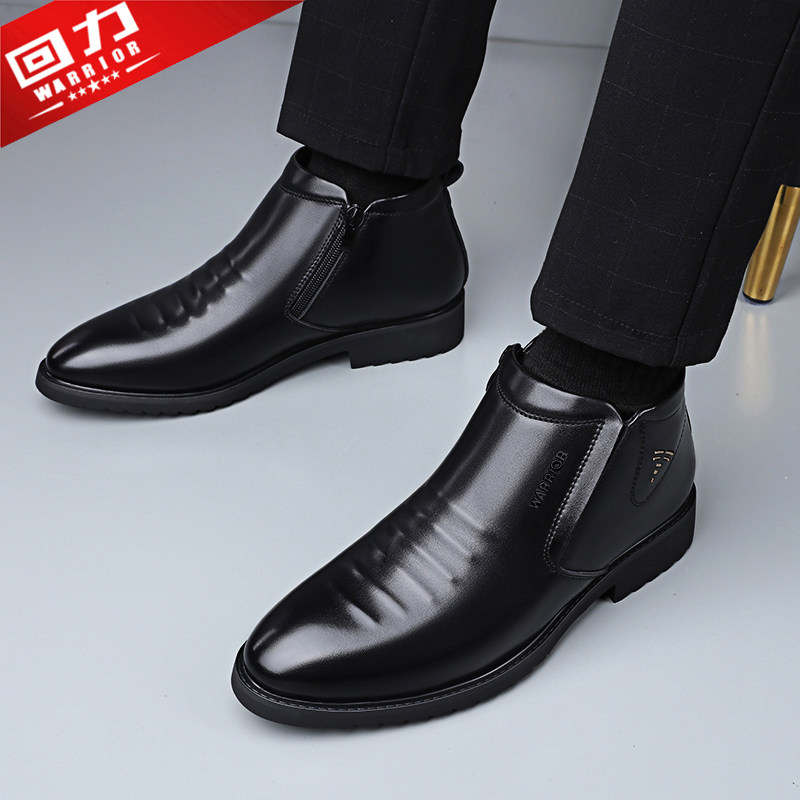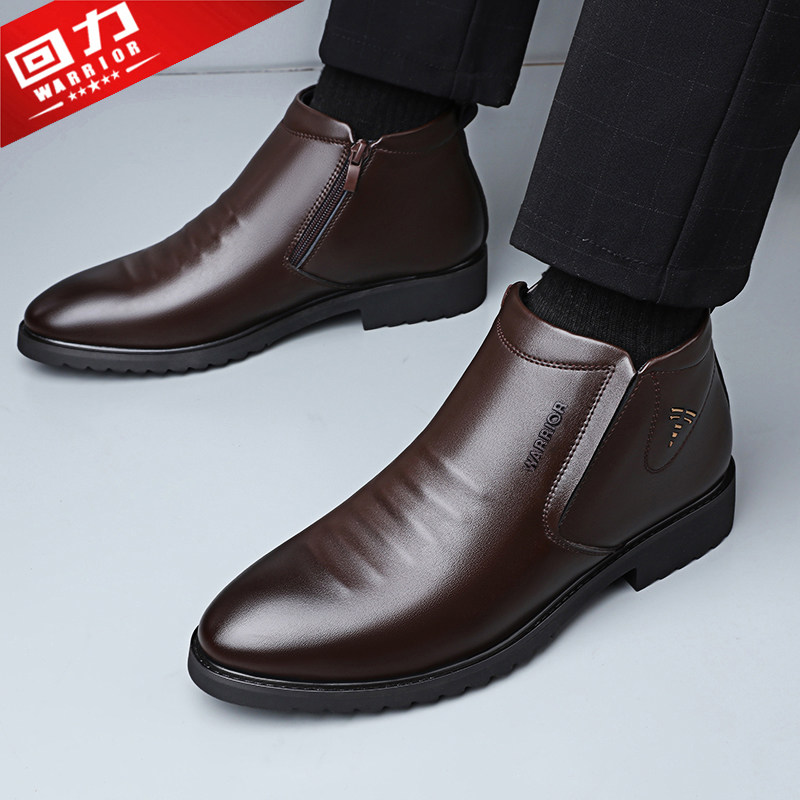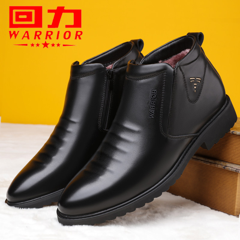 回力高帮棉鞋男冬季正装商务真皮加绒保暖中年男鞋侧拉链皮靴子