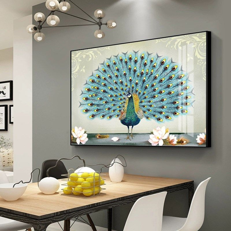 简欧客厅装饰画卧室沙发背景挂画饭厅玄关过道餐厅古典孔雀开屏