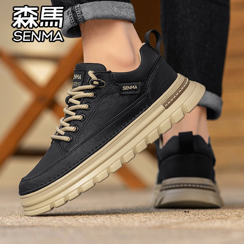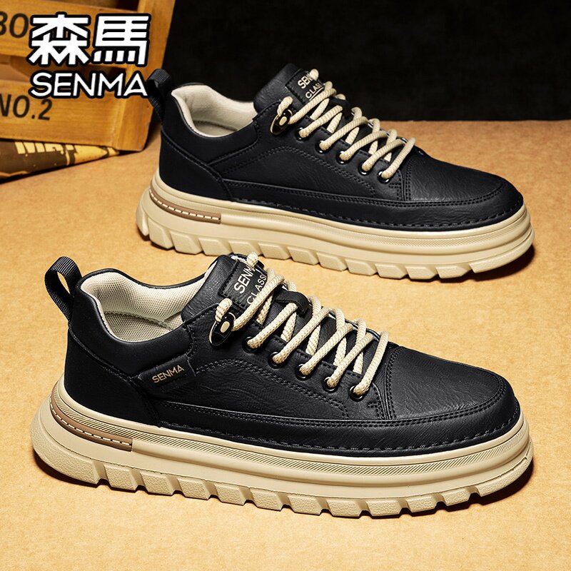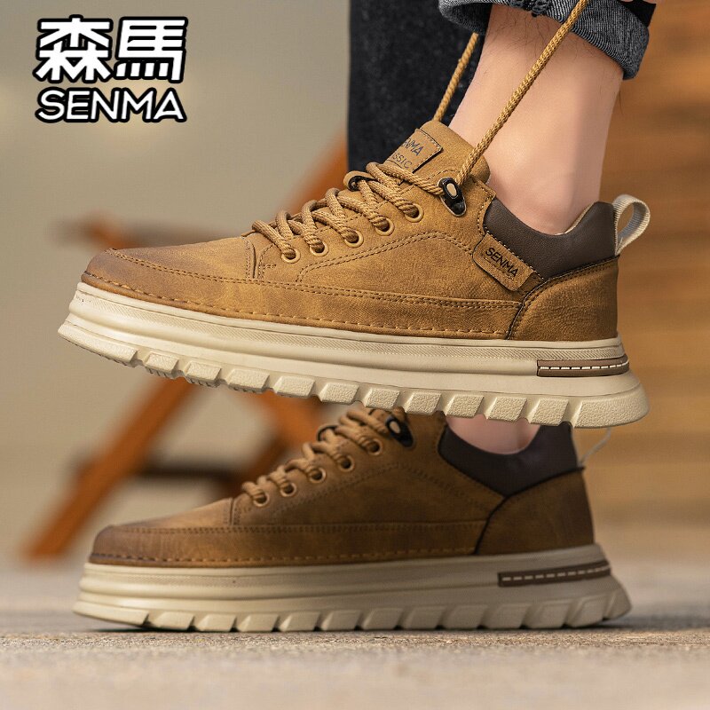 森马男鞋春季潮流百搭男士休闲复古板鞋运动真皮皮鞋增高软底潮鞋