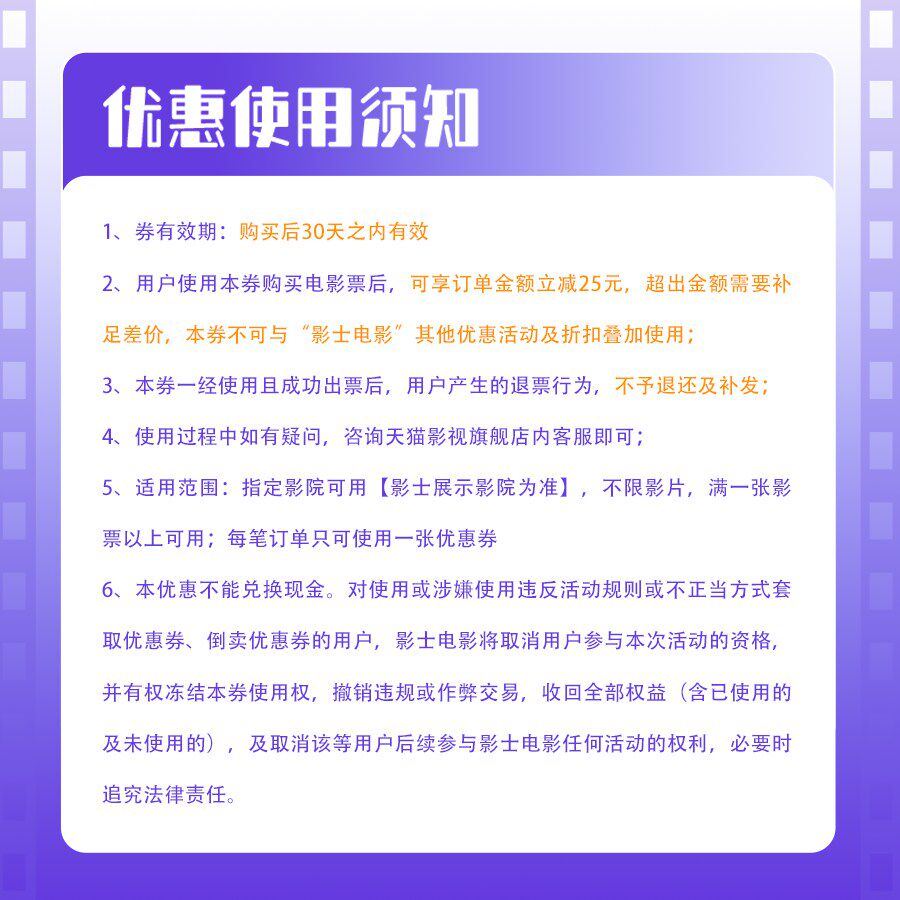【新店特惠 】不限影片25元电影票无门槛立减券全国通用特惠购票