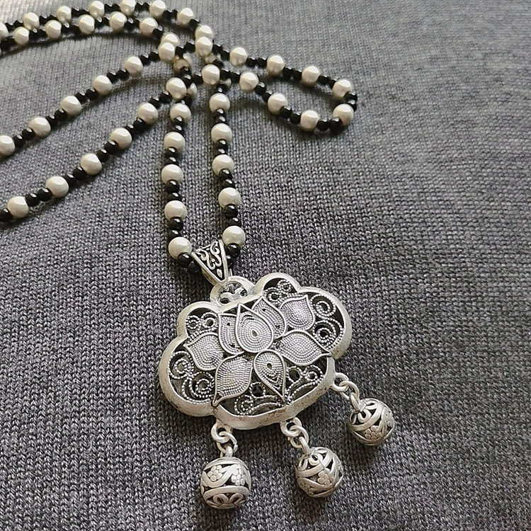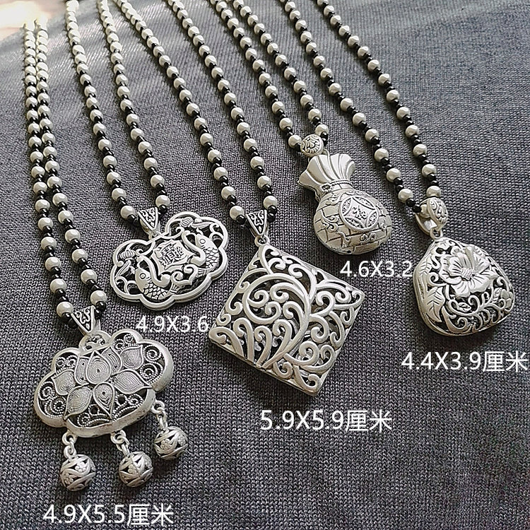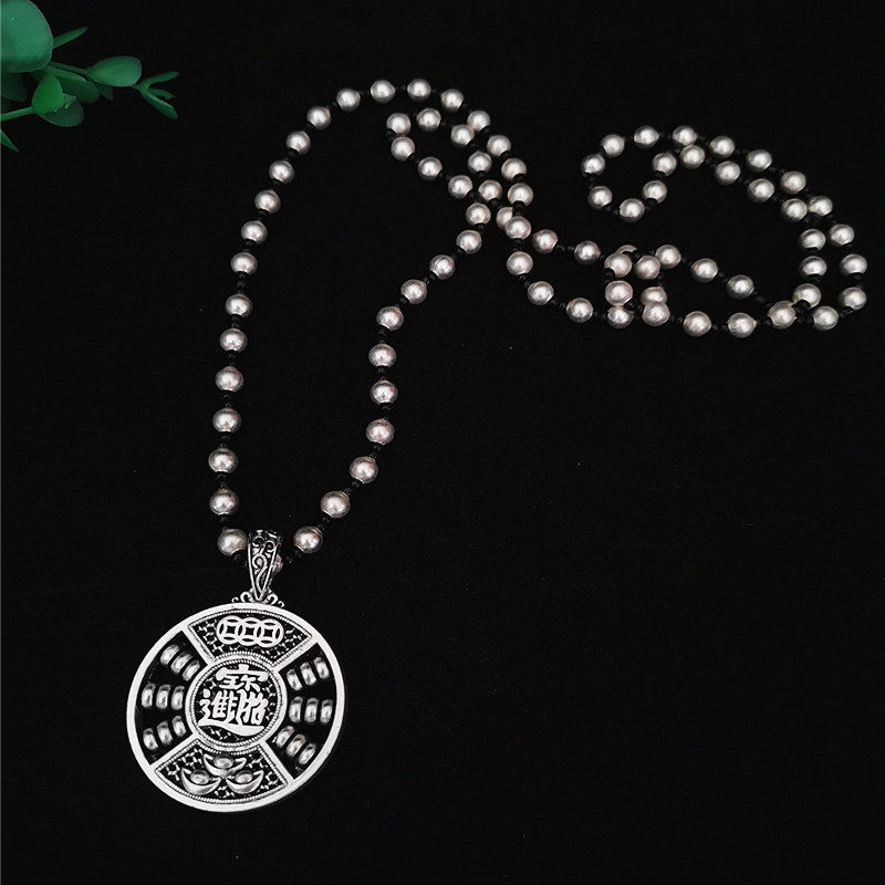 原创设计银饰毛衣链财长命锁文艺