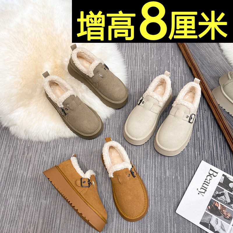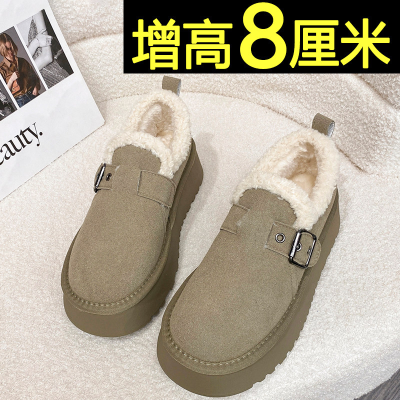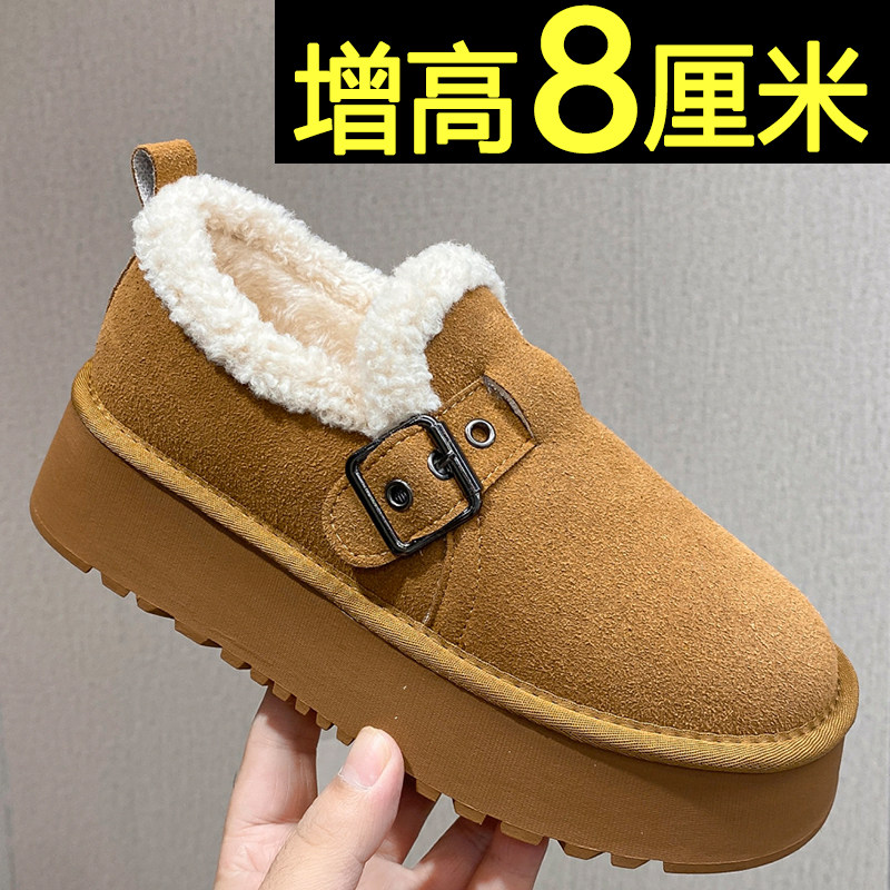 内增高雪地靴女2025新款冬季加绒加厚保暖全包勃肯鞋厚底面包棉鞋
