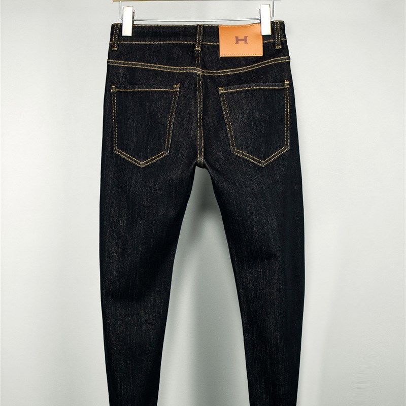 九分牛仔裤男士防褪色莱赛尔高级四面弹力黑色潮流百搭修身小脚裤