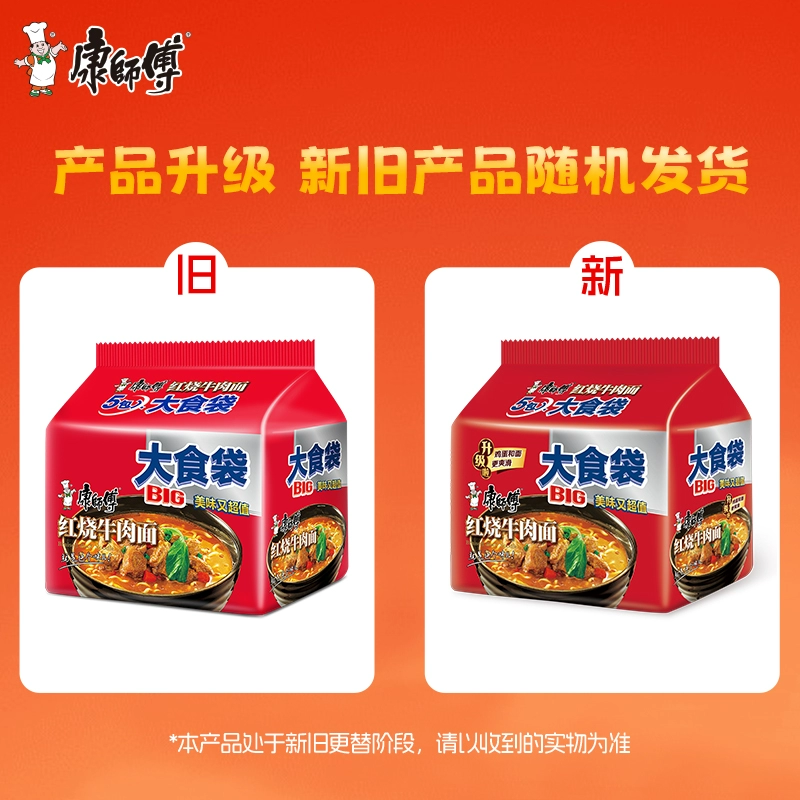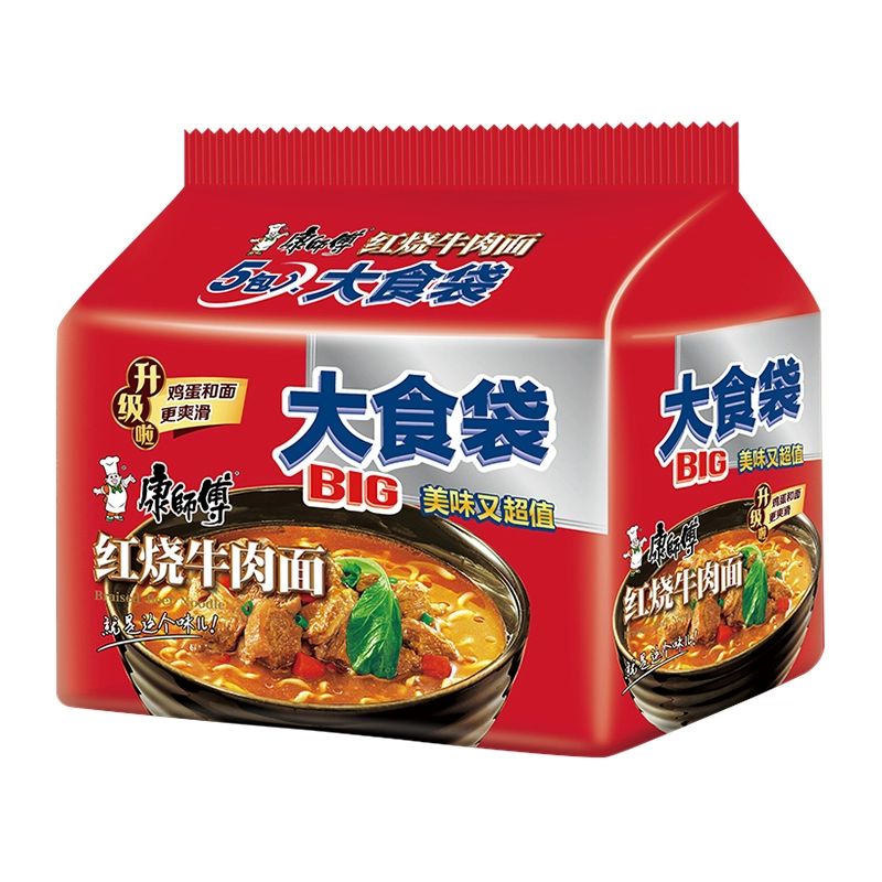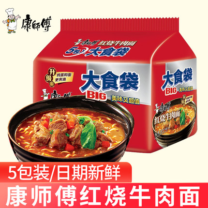 康师傅方便面大食袋红烧牛肉面5袋装泡面速食面1件装宿舍夜宵食品