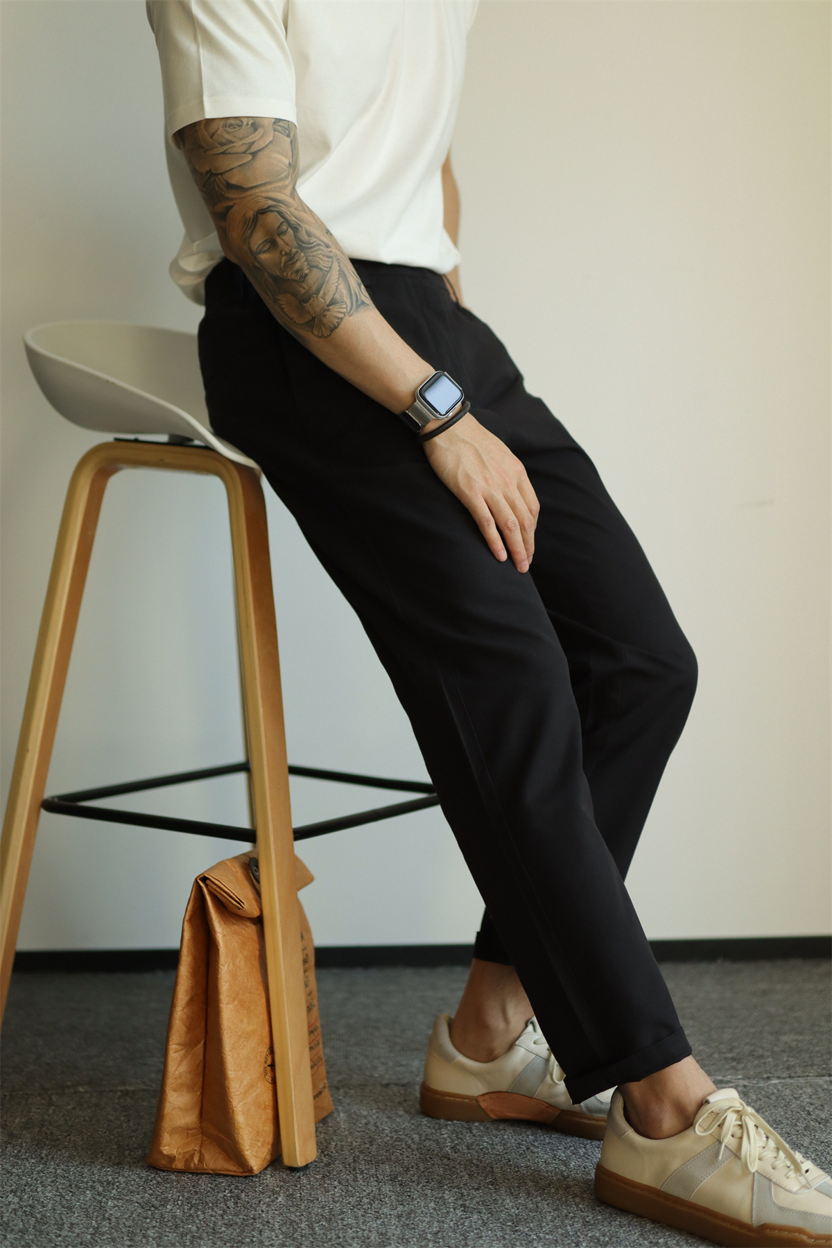 YUXIAN余闲春夏季天丝垂感九分轻熟高级感休闲商务直筒长裤修身男
