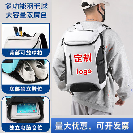 印logo新款羽毛球双肩包大容量多功能训练背包运动独立鞋位