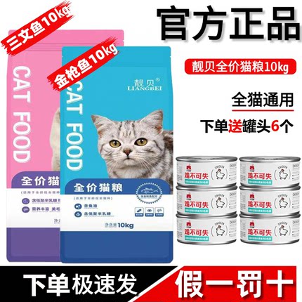 【新日期】靓贝猫粮10kg金枪鱼三文鱼成猫幼猫通用20斤装宠物主粮
