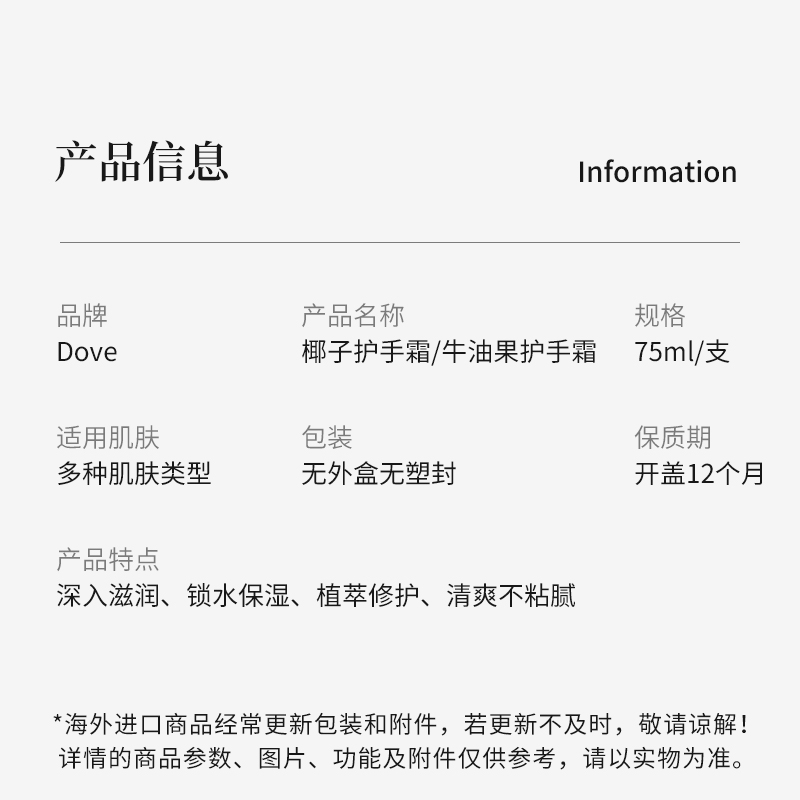 DOVE多芬护手霜椰子牛油果保湿轻盈补水保湿滋润便携椰香防开裂