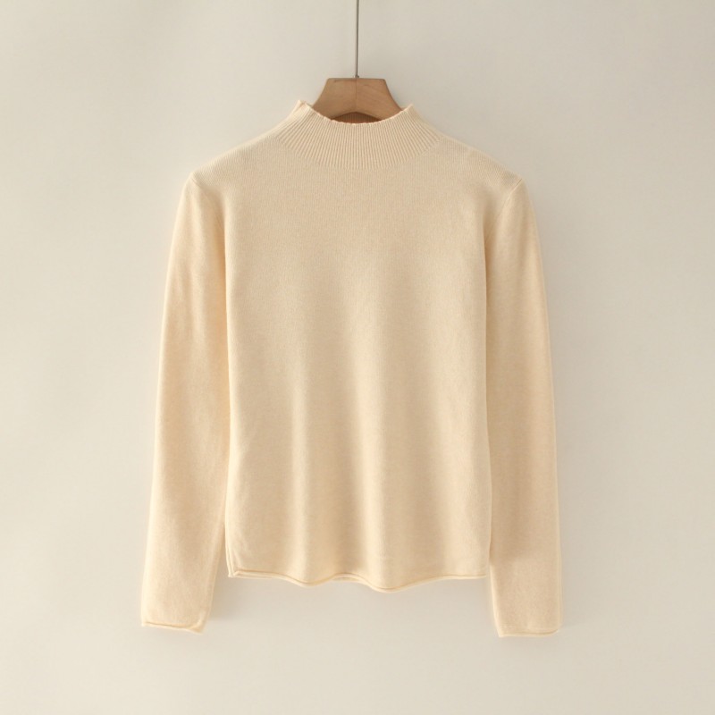纯色半高领针织衫秋冬修身显瘦百搭打底衫舒适套头毛衣女