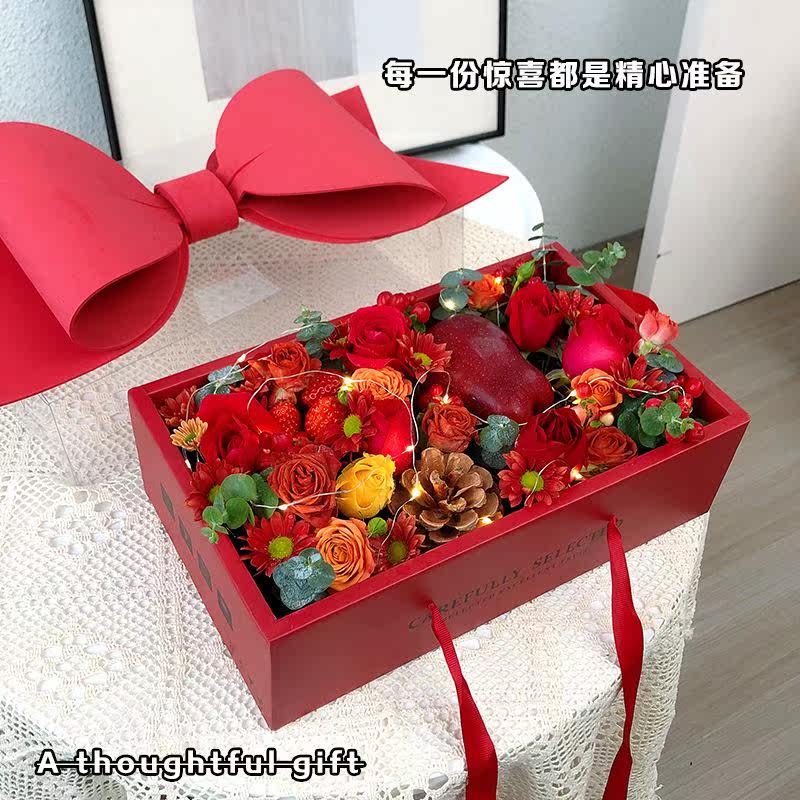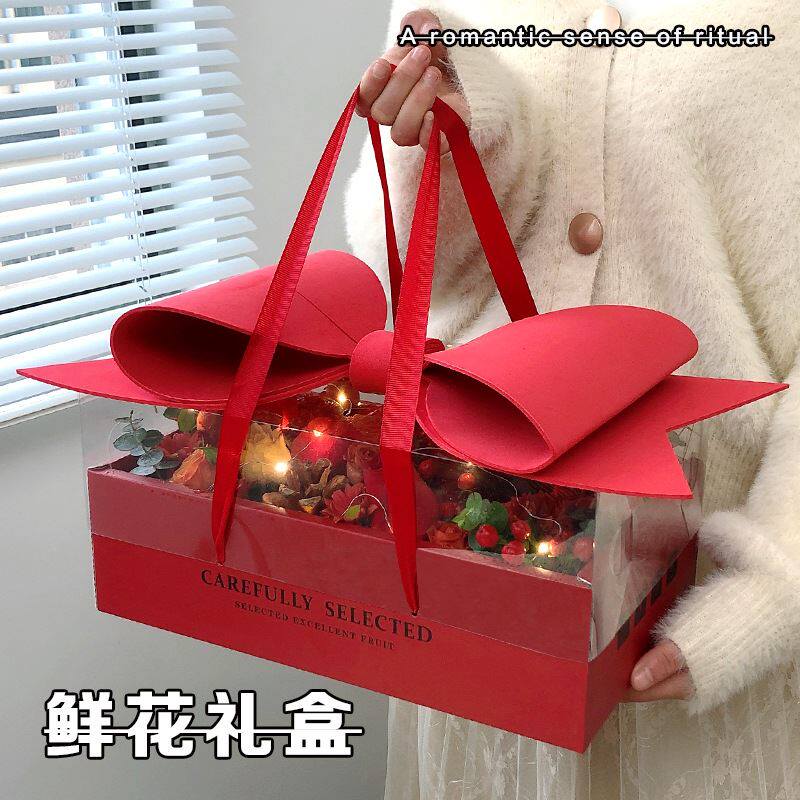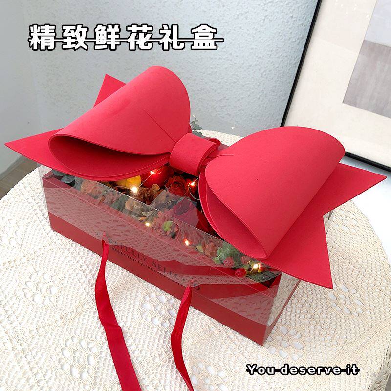 圣诞节鲜花礼物盒空盒蝴蝶结透明盖高档礼盒送闺蜜女友精致礼品盒