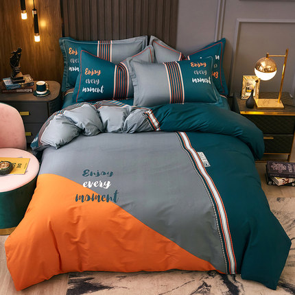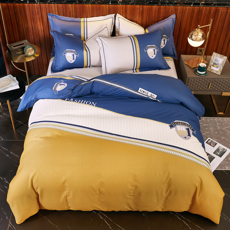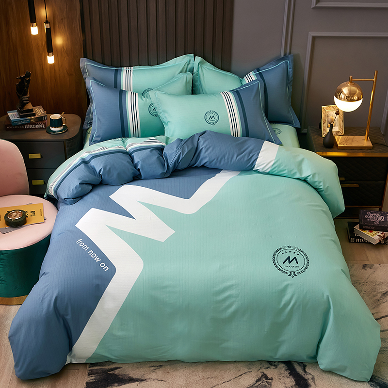 纯棉三件套男北欧1.8米全棉四件套条纹G床单1.5床笠被套简约青少