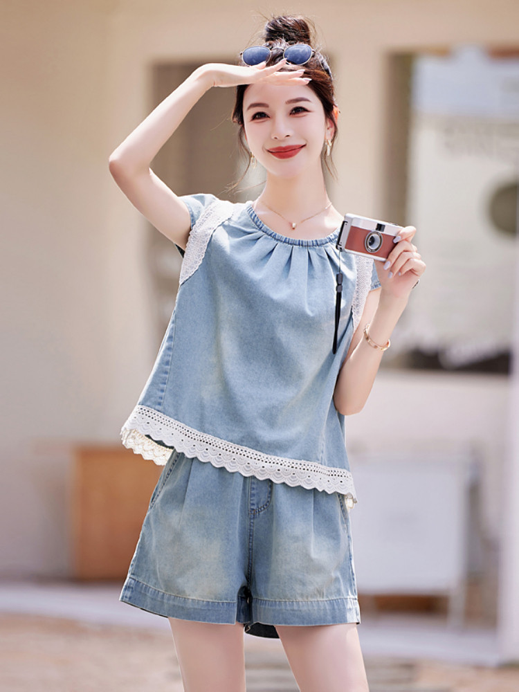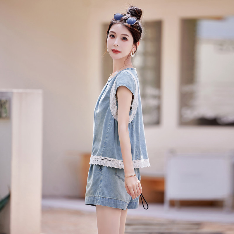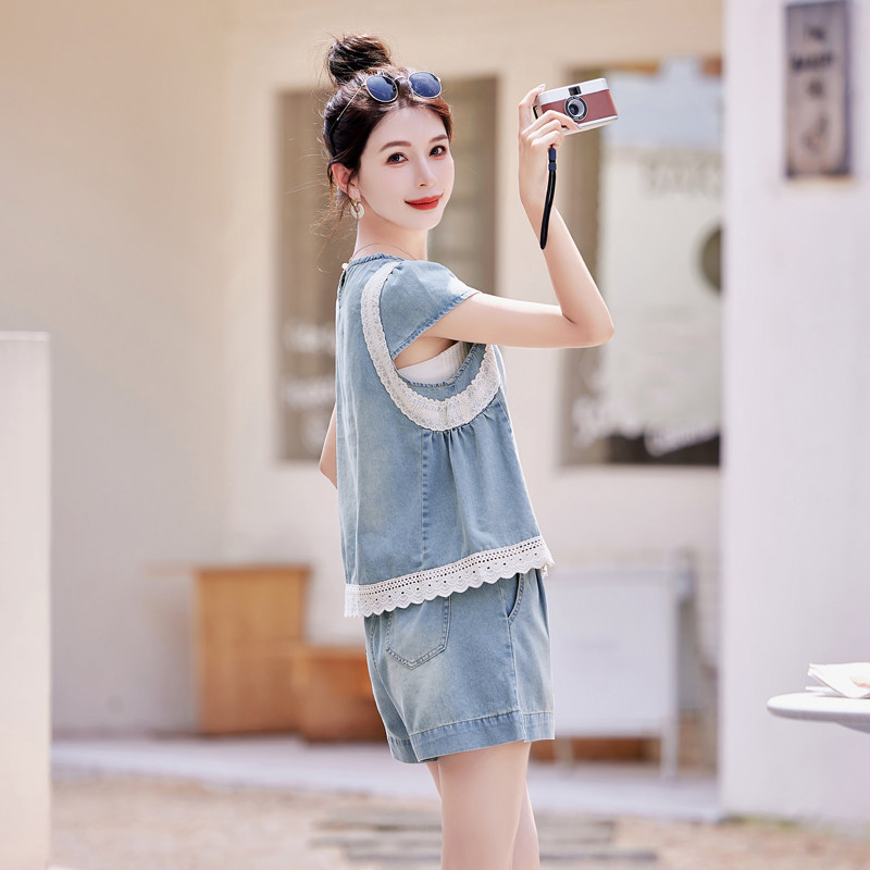 时尚牛仔套装女2025年夏季新款港味复古小个子短裤两件套休闲显瘦