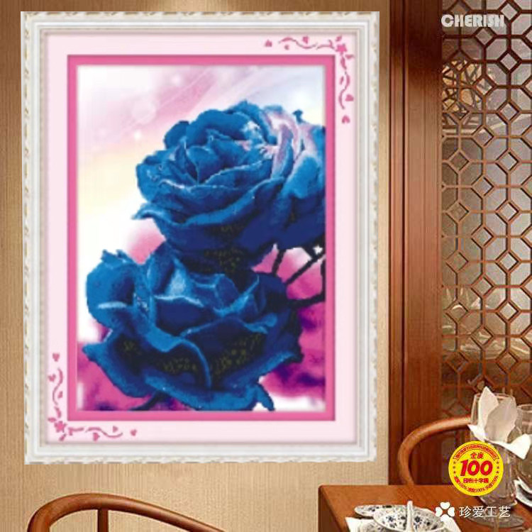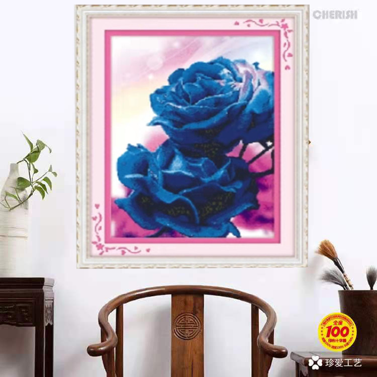 珍爱工艺爱络爱优微十字绣钻石绣蓝色玫瑰卧室书房客厅餐厅纯棉绣
