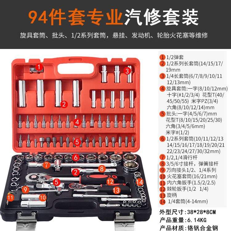 工业级94件套套筒工具套装手动扳手工具汽修五金工具万用棘轮扳手