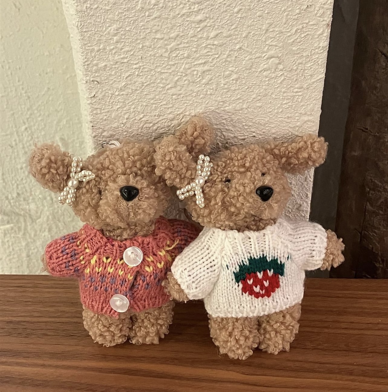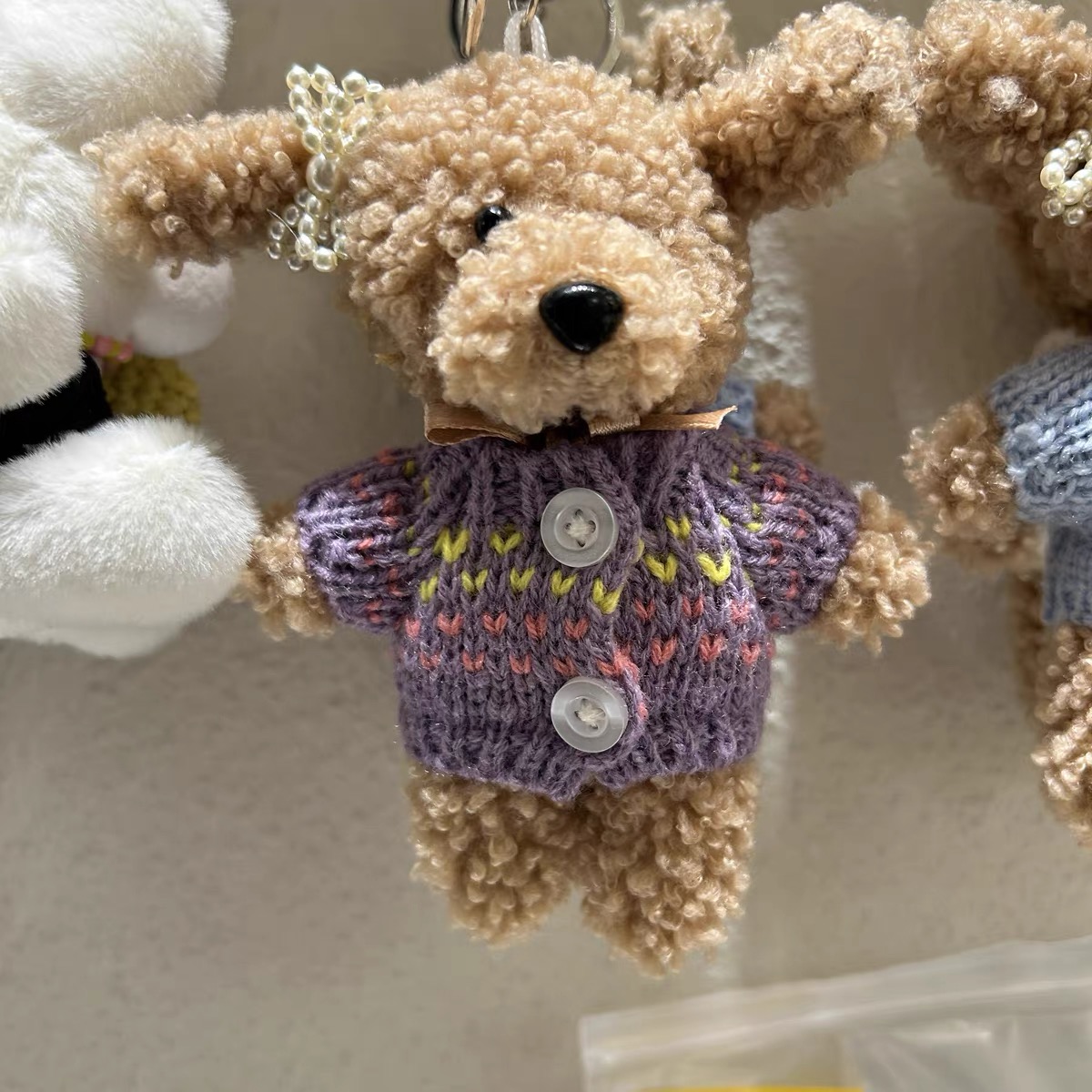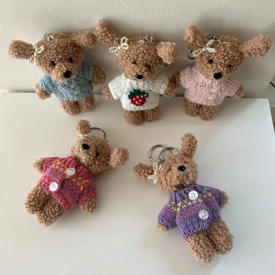 韩国东大门代购 毛茸茸卷毛毛衣小熊可爱毛绒玩偶钥匙扣包包挂件
