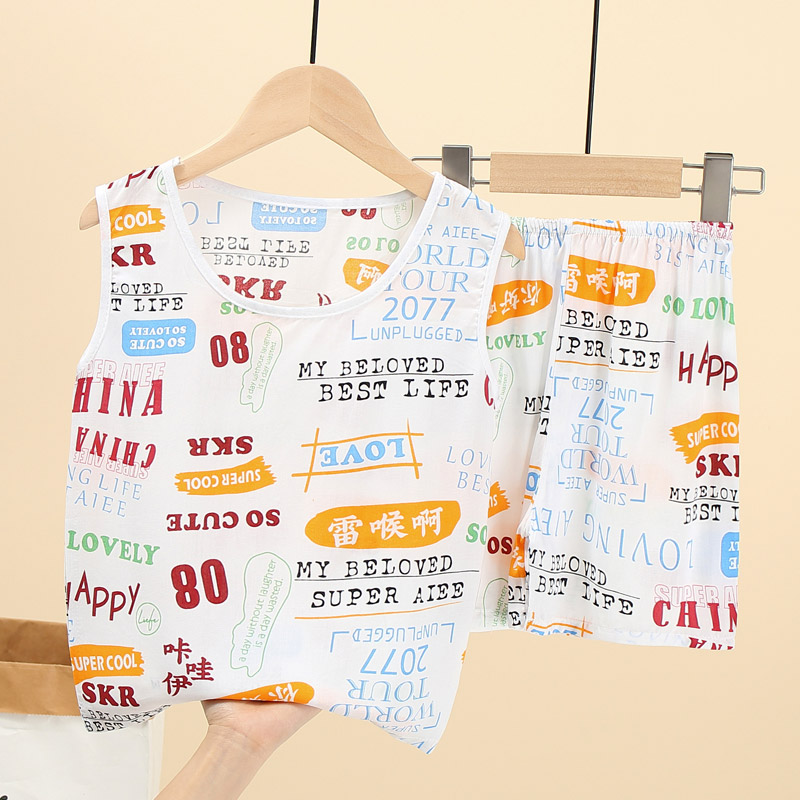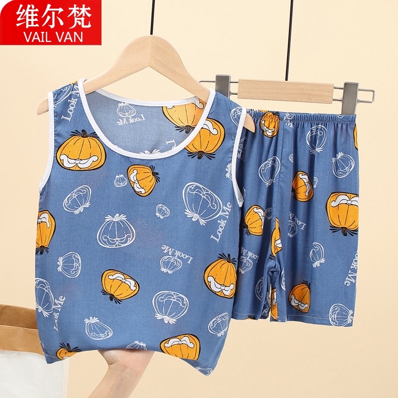 夏季儿童棉绸无袖背心短裤套装男童女童宝宝薄款睡衣家居服空调服
