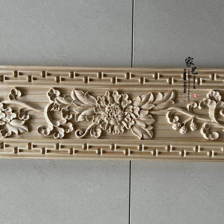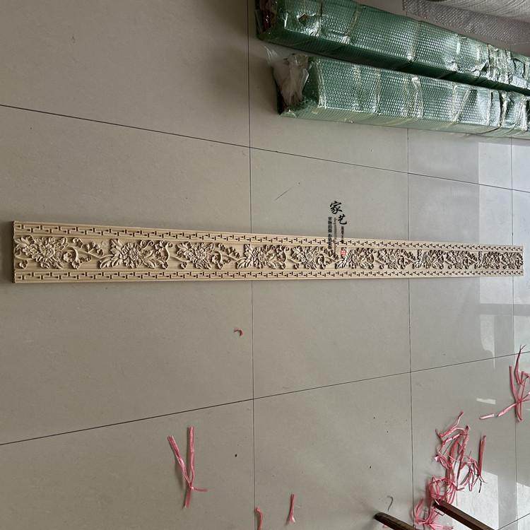 东阳木雕藏式实木线条中式客厅牡丹长城回纹背景墙框吊顶装饰雕花