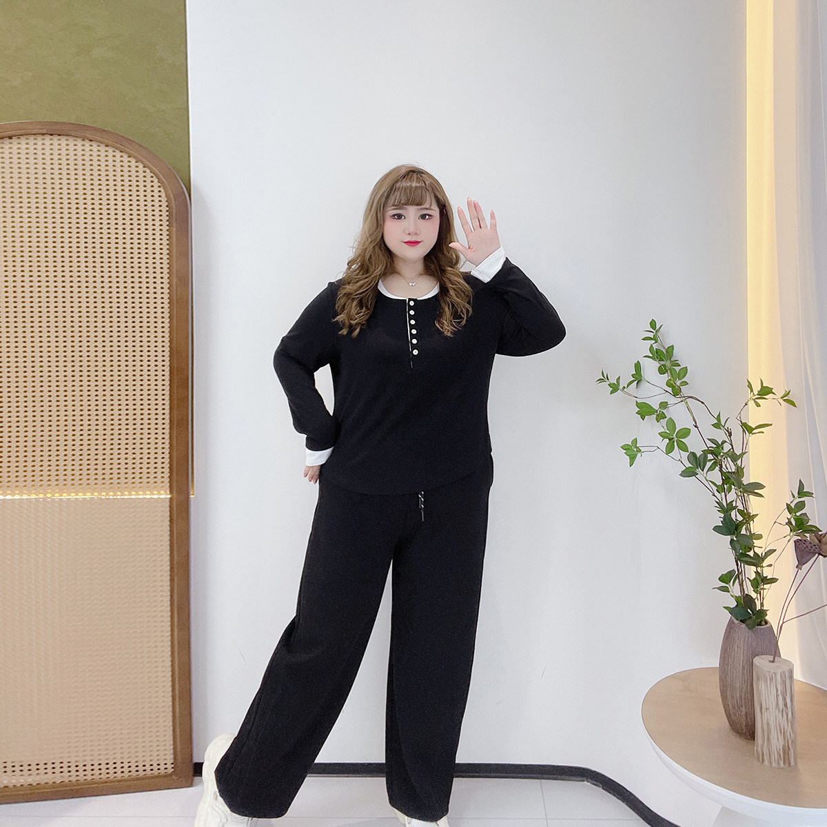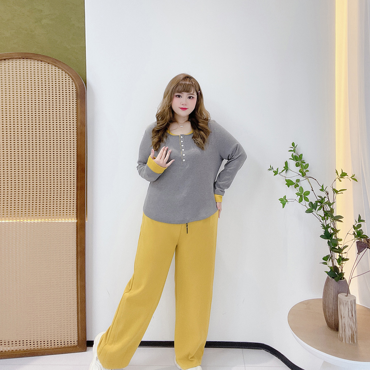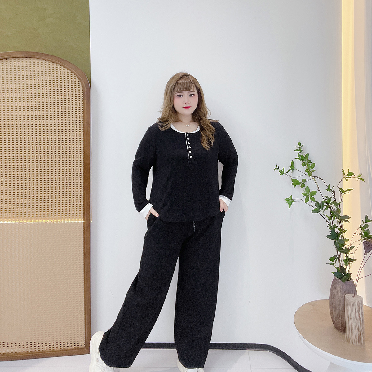 早秋穿搭套装胖仙女莹莹大码女装胖mm休闲假两件上衣遮肉阔腿裤子